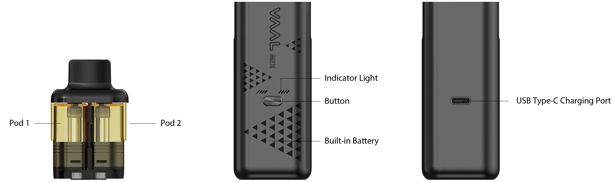 The VAAL MIX delivers up to 1000 puffs per pod with bold, satisfying flavor. Each 2ml prefilled pod contains 20mg nicotine and is equipped with a 1.2Ω mesh coil for smooth MTL performance. With dual pods and four vaping modes, you can freely mix or match flavors to suit your preference. Powered by a 1100mAh rechargeable battery and featuring Type-C charging, the VAAL MIX offers a customizable and long-lasting vaping experience.